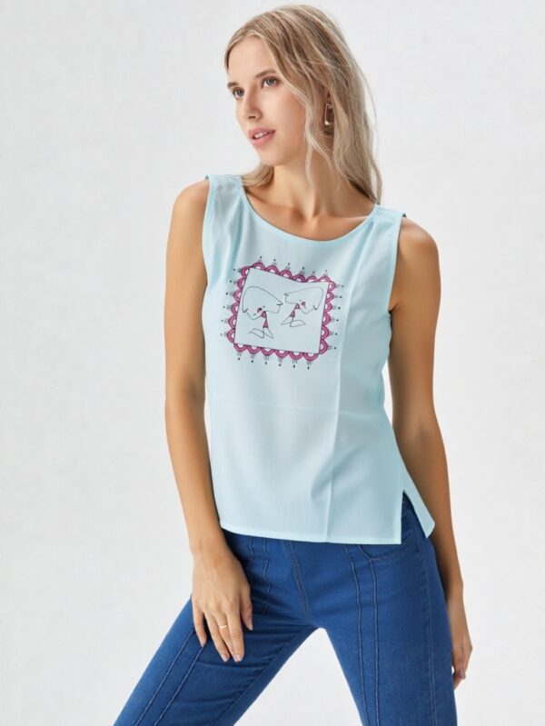 - Fit: Comfortable, sleeveless crop-length
