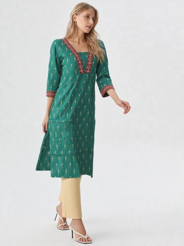 Long Kurti-Ikkat Green