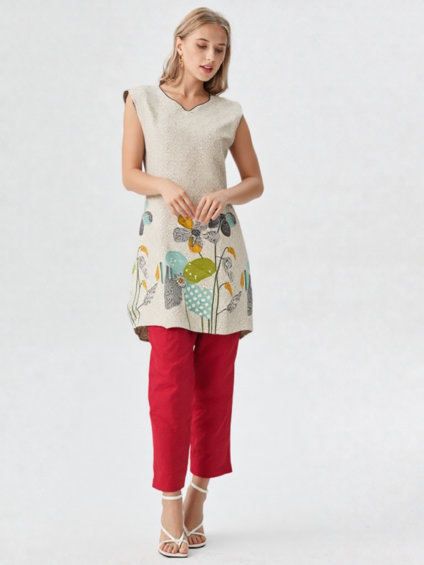 - Kantha-inspired front embroidery