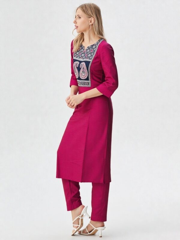 - Detailed ethnic embroidery on yoke