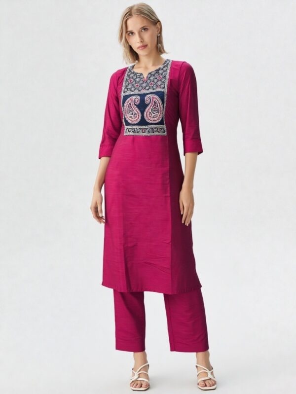 - Traditional Abhand-style embroidered yoke