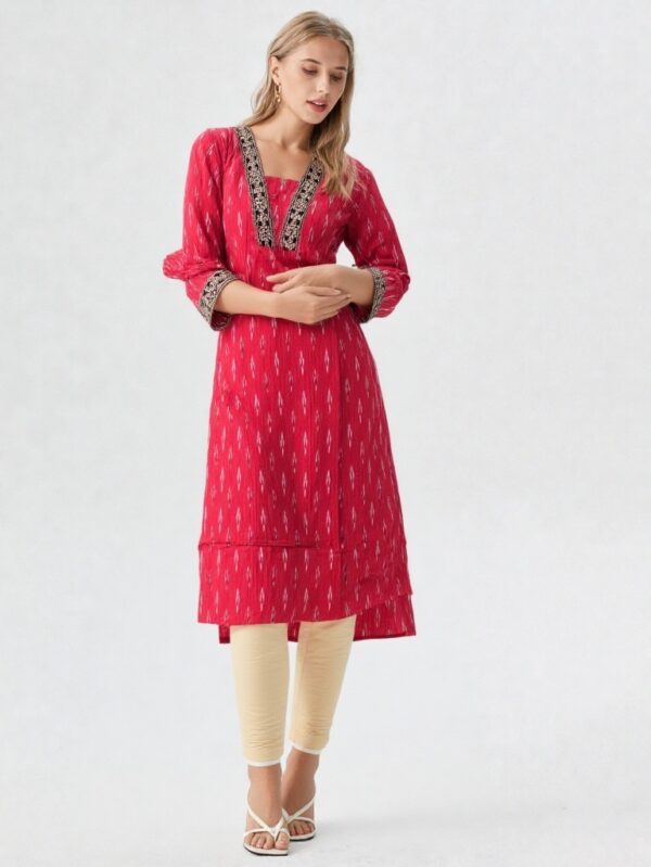 Long Kurti-Ikkat (Red)