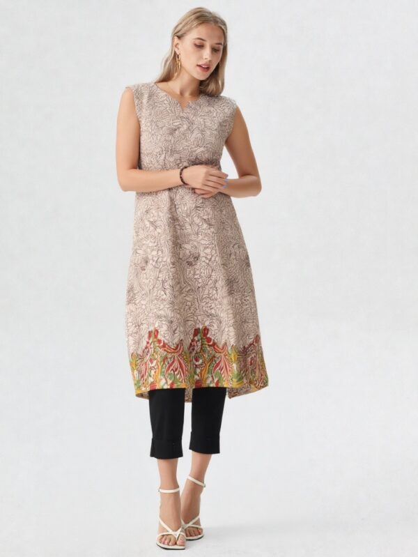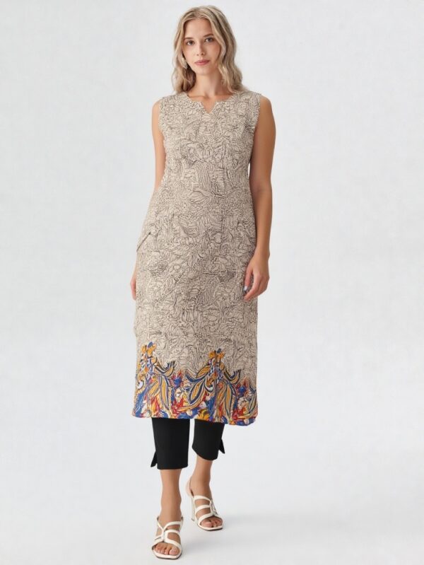 - Sleeveless outer kurti for a modern look