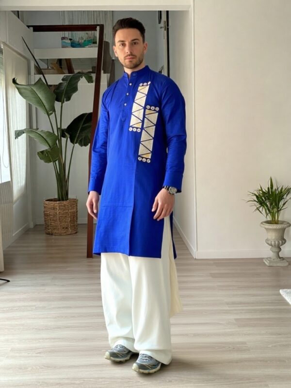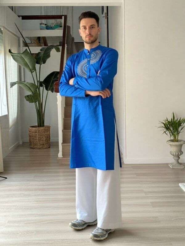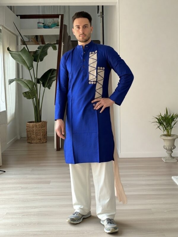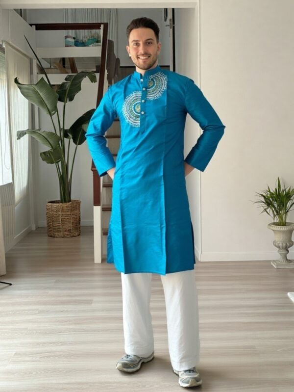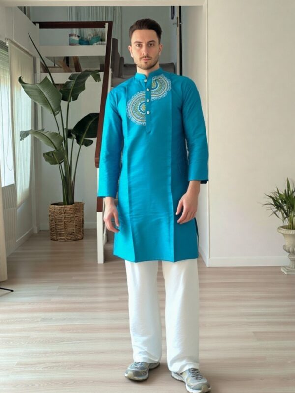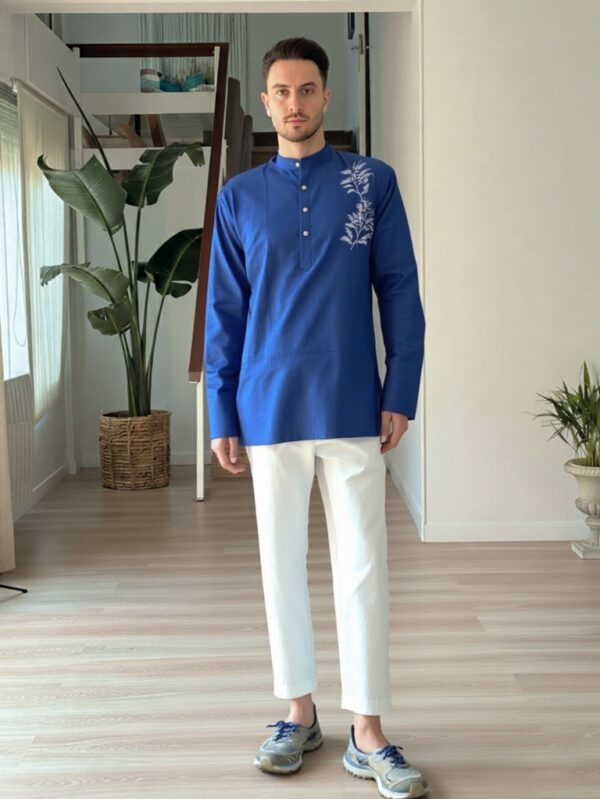 Gents Short Kurta Silver-Oaak-Ruby-Denium-(blue)