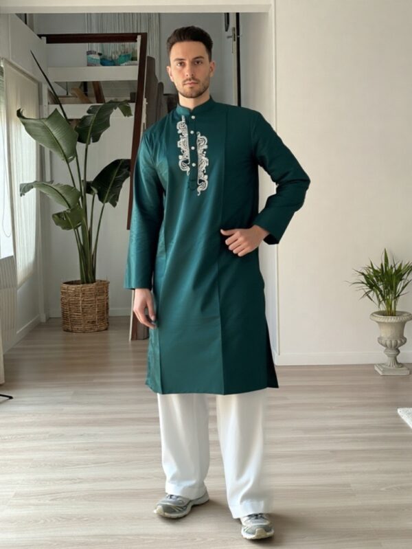 Gents kurta-Uparna-Silk-(DarkGreen)