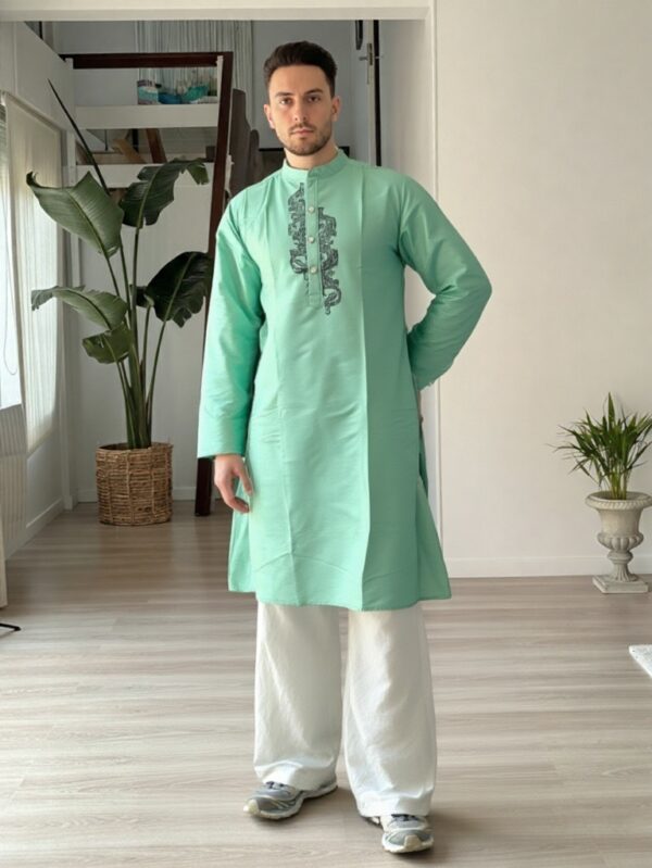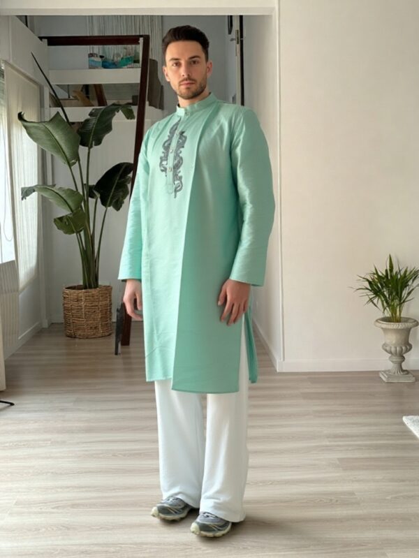 Gents-Silk-kurta-Mandala-(Parrot Green)