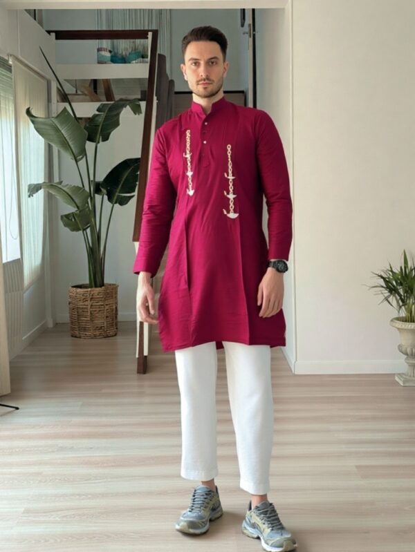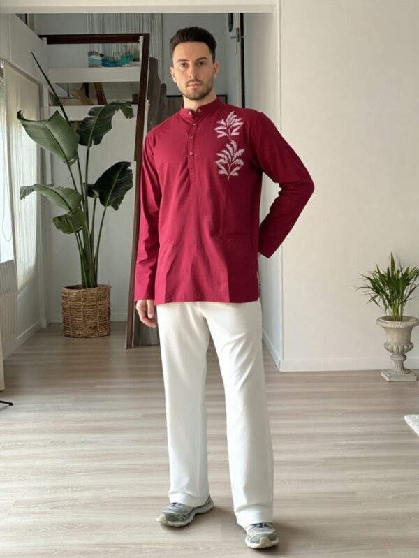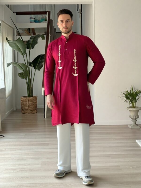 Gents Short Kurta Silver-Oaak-Ruby-(Red)