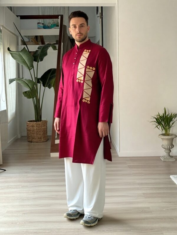 Gents Kurta-Uparna-Cotton-Silk-(Maroon)