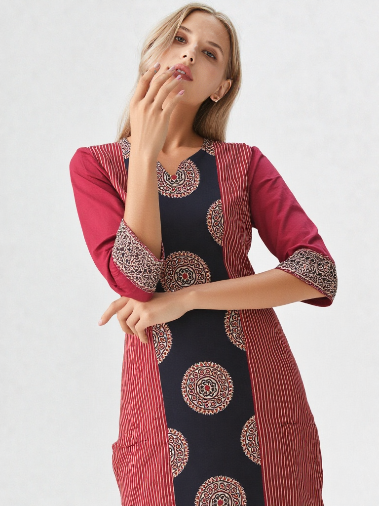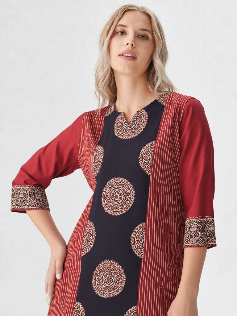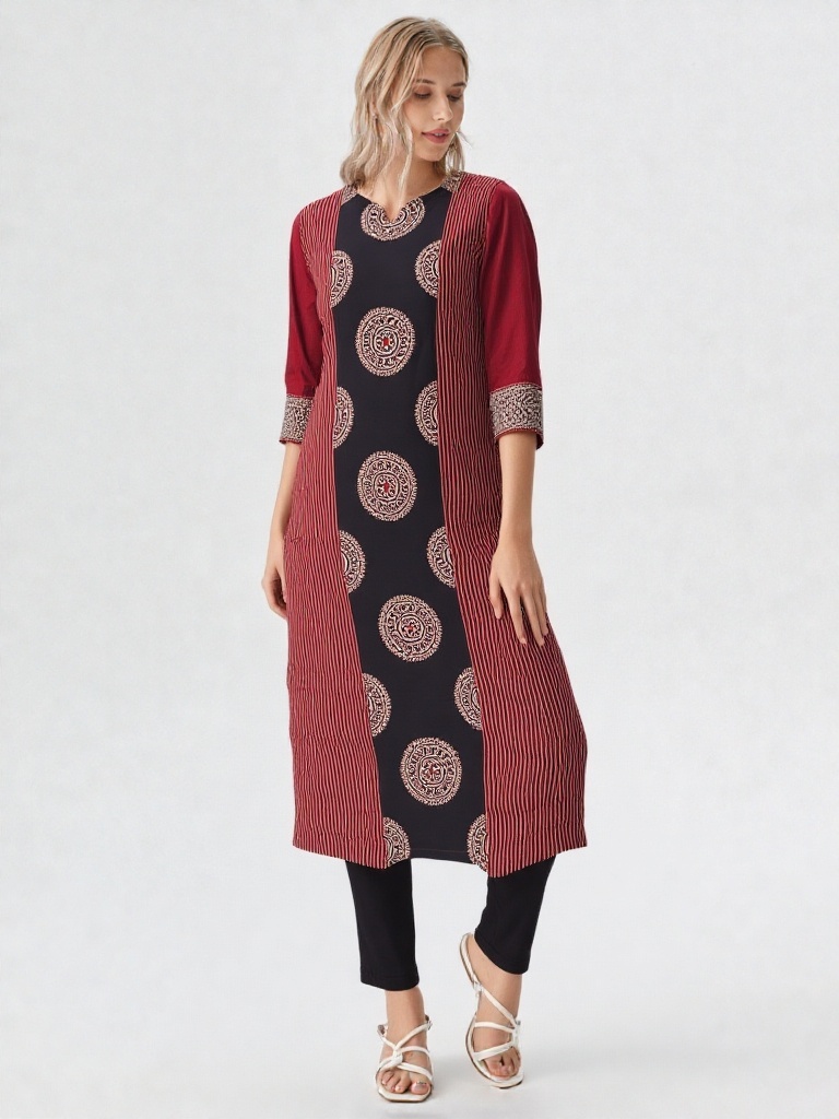 Be the first to review “Ajrakh Kurti – Maroon & Black”