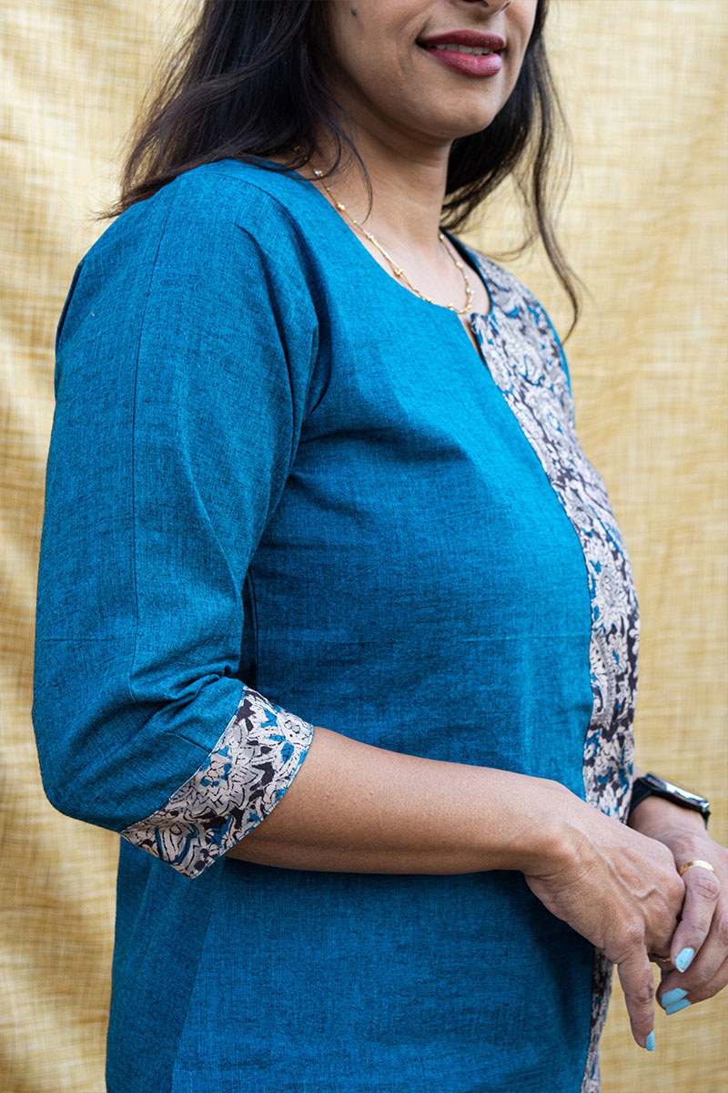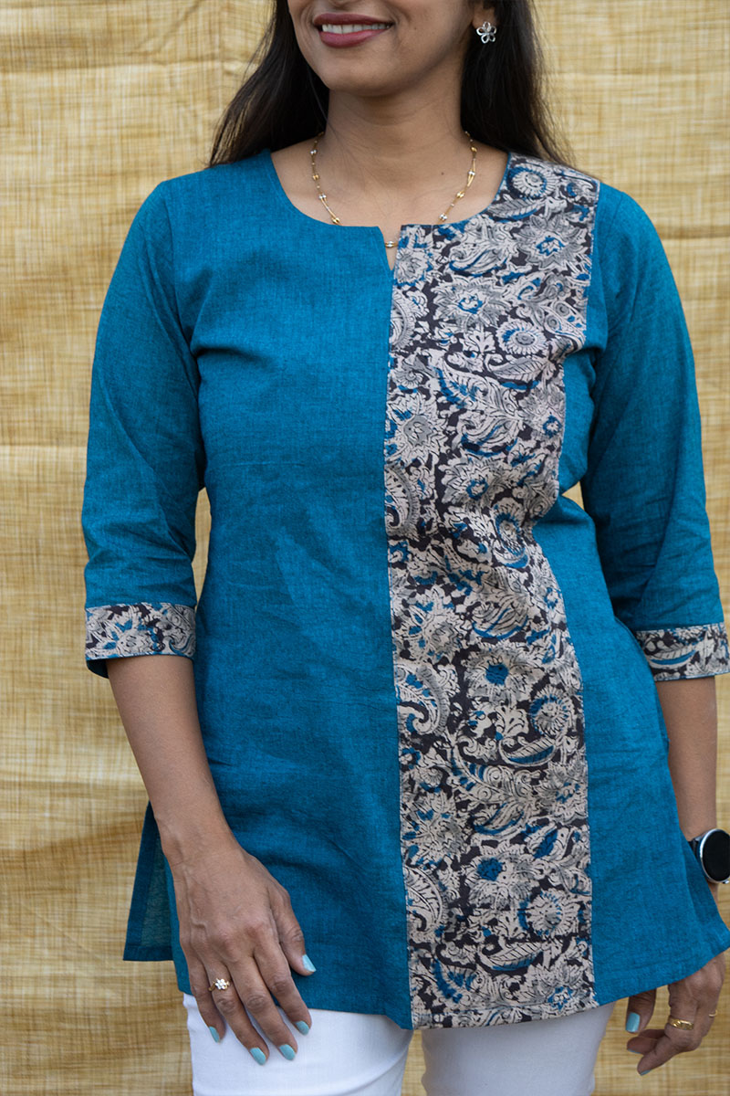 Experience elegance with our uniquely designed Kalabandh tunic, a fusion of tradition and comfort. Made from premium pure cotton, this tunic blends the intricate artistry of Kalamkari with the rich texture of Mangalagiri fabric. The straight belt of Kalamkari adds a striking contrast, beautifully complementing the all-over Mangalagiri weave. Pre-washed to ensure zero shrinkage, this exclusive design promises both durability and effortless style. Perfect for any occasion, this tunic celebrates India’s heritage while offering modern comfort.