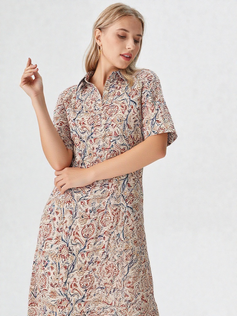 | Description | Elevate your style with this exquisite one-piece dress, crafted from a luxurious cotton-silk blend that offers both comfort and a subtle sheen. The standout feature of this dress is its printed artistic design, a mesmerizing blend of colors and patterns that exude creativity and sophistication. Complementing this artwork is a unique design pattern, ensuring a distinctive and fashion-forward look. Whether for a casual day out or a statement evening ensemble, this dress is a perfect blend of art and elegance, making it a must-have in your wardrobe. |