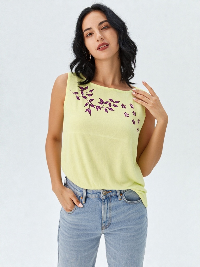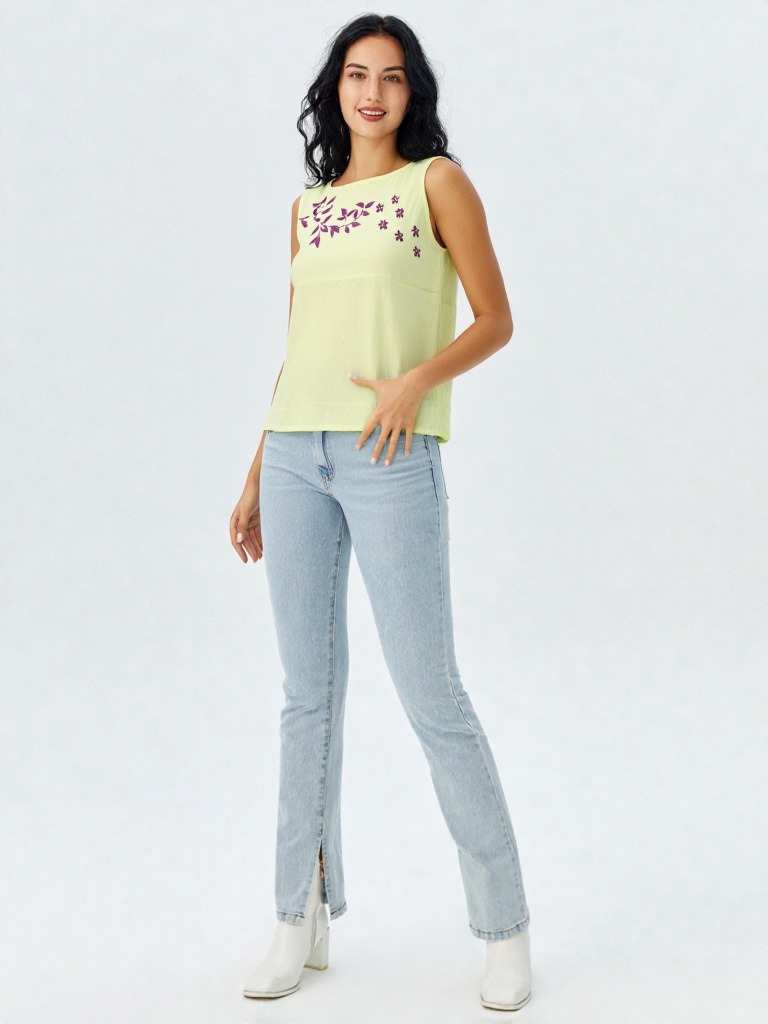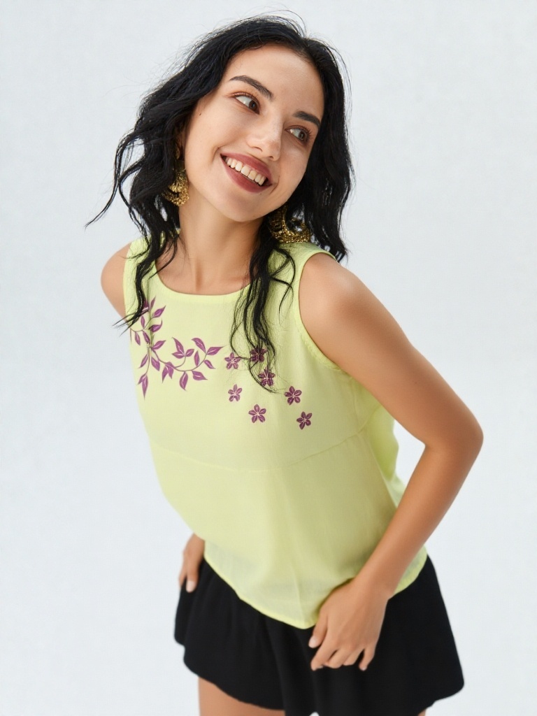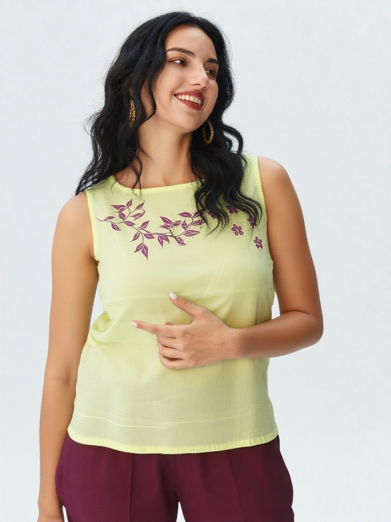Bright, breezy, and effortlessly elegant — this lemon yellow soft cotton crop top is designed to add a fresh pop of sunshine to your wardrobe. The neckline is adorned with a delicate floral vale motif in contrasting tones, giving the top a soft feminine charm.