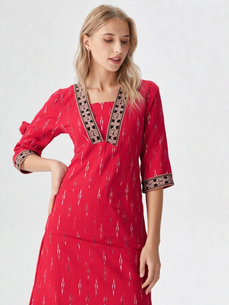 Be the first to review “Long Kurti-Ikkat (Red)” Cancel reply