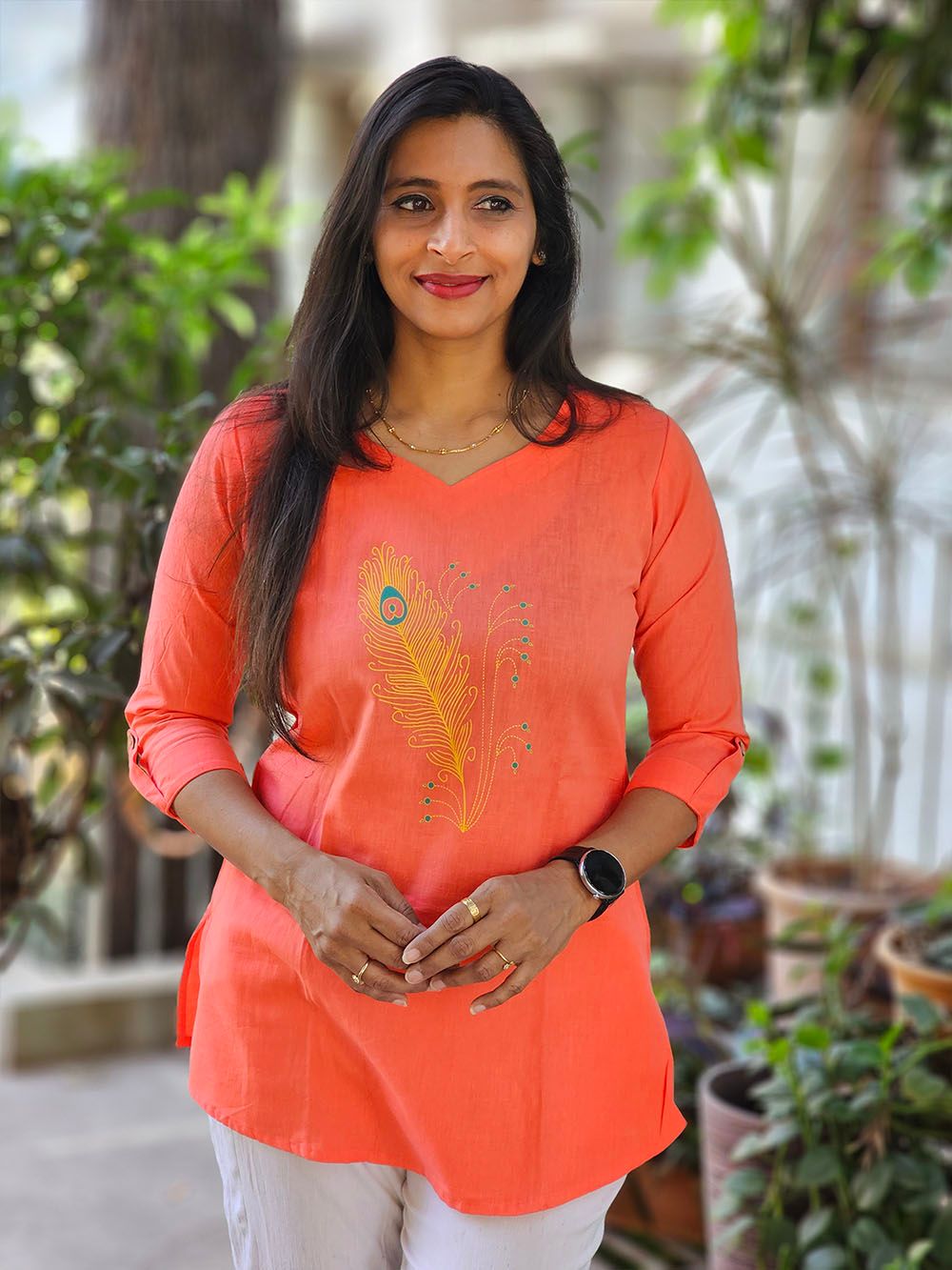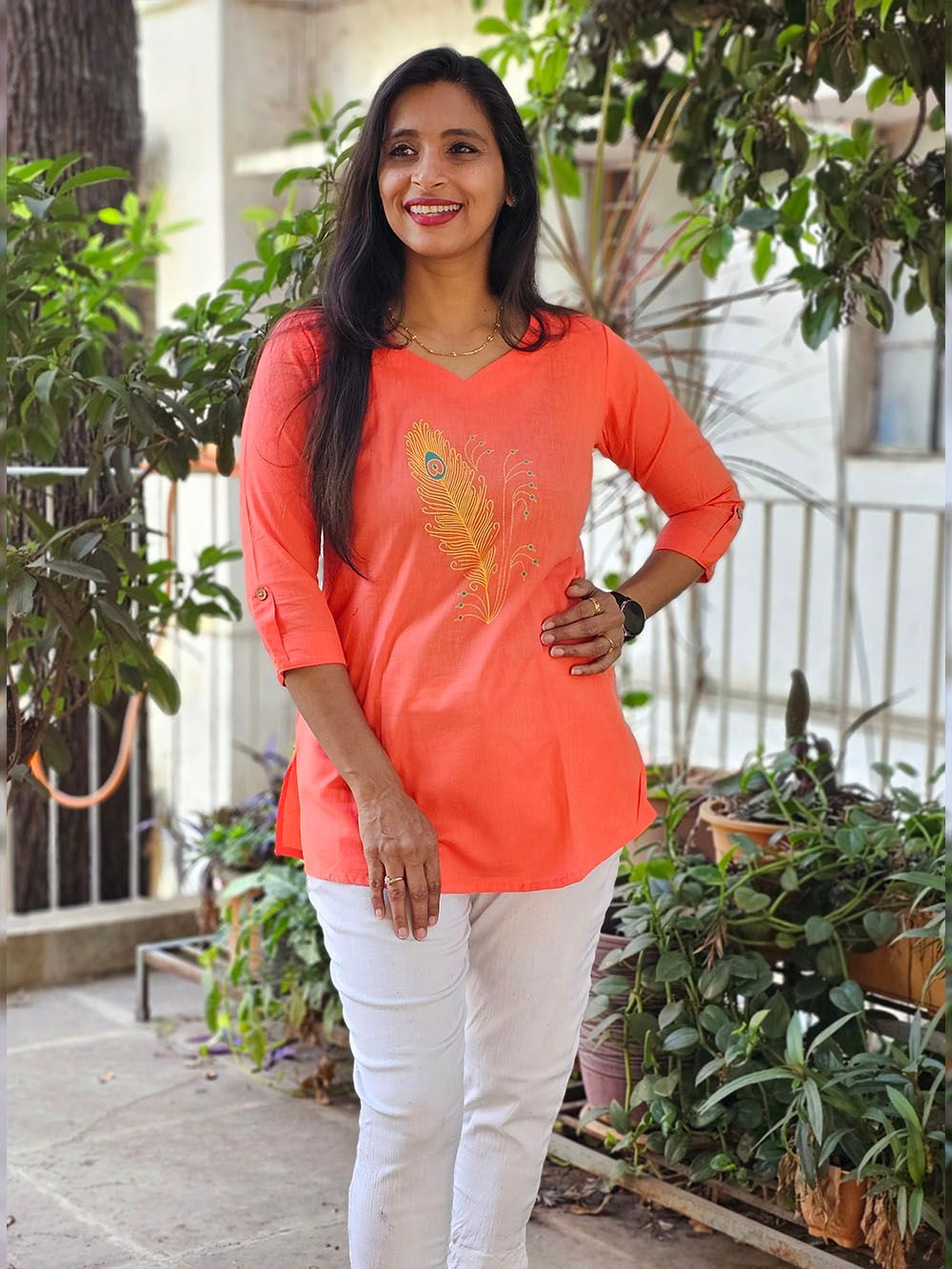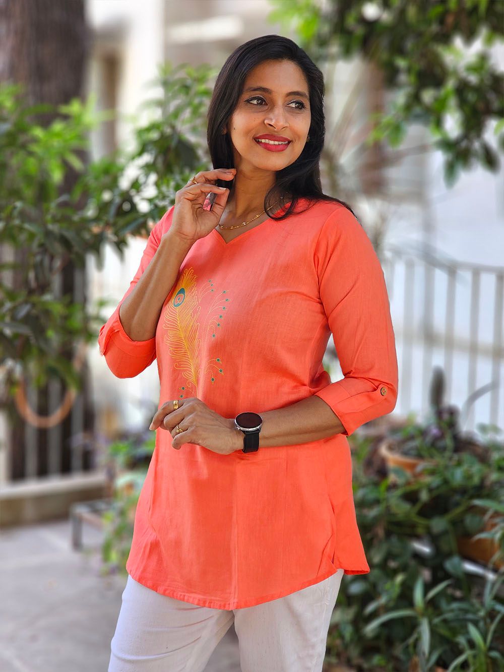 Pair it with classic leggings, wide pants, or even denim for a fusion look. Add a handcrafted necklace or a simple stole to enhance the look. Whether it’s a casual day out or a festive gathering, this tunic transitions beautifully with just a change of accessories.