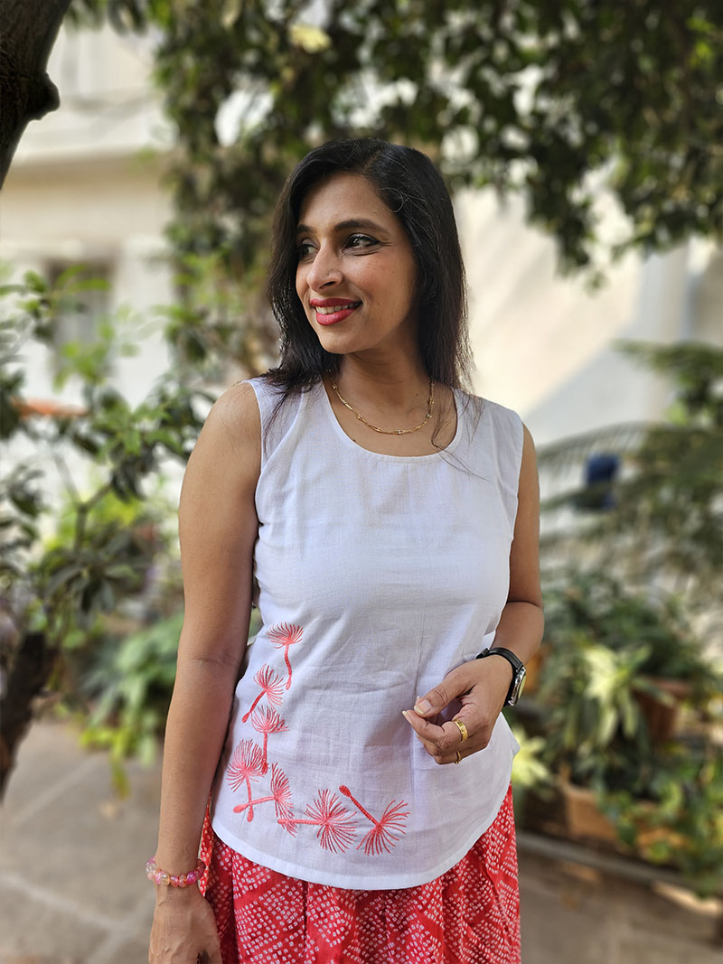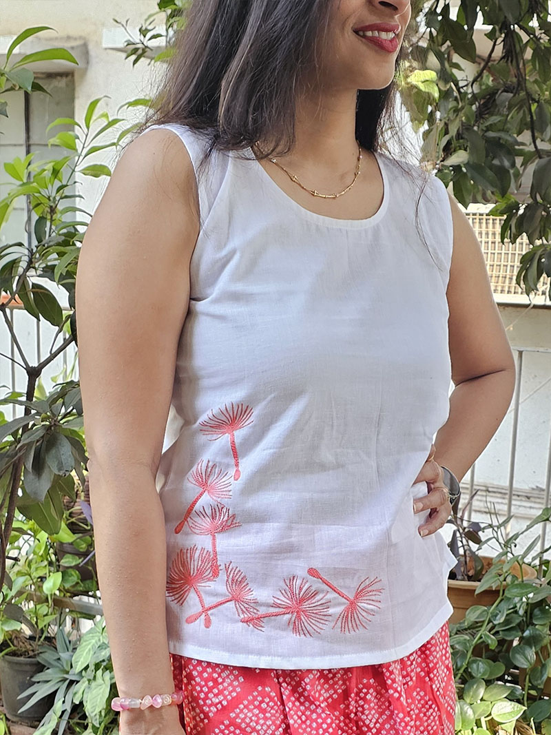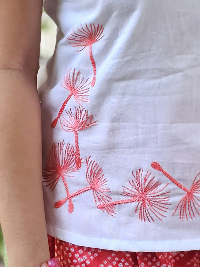 Celebrate the vibrancy of nature with this exquisite cotton-linen crop top, featuring delicate hand-embroidered floral motifs—a timeless symbol of passion and elegance. Crafted from premium-quality fabric, it offers breathability, comfort, and a luxurious feel. The meticulous handwork adds an artistic touch, making it a perfect blend of tradition and contemporary fashion. Elevate your wardrobe with this one-of-a-kind masterpiece, designed for those who appreciate craftsmanship and beauty