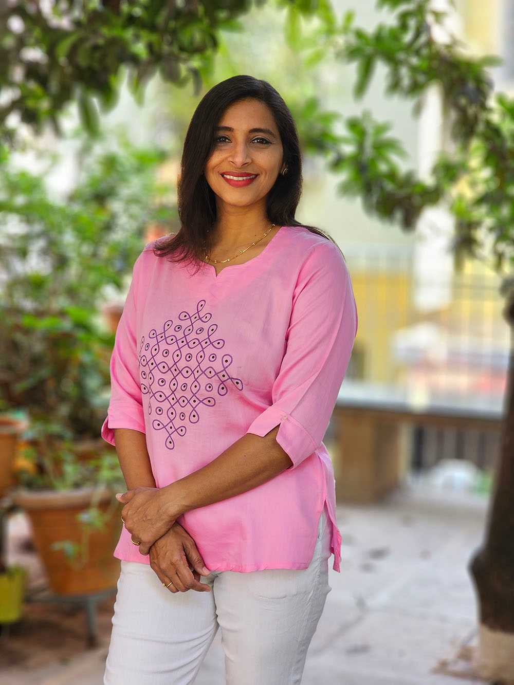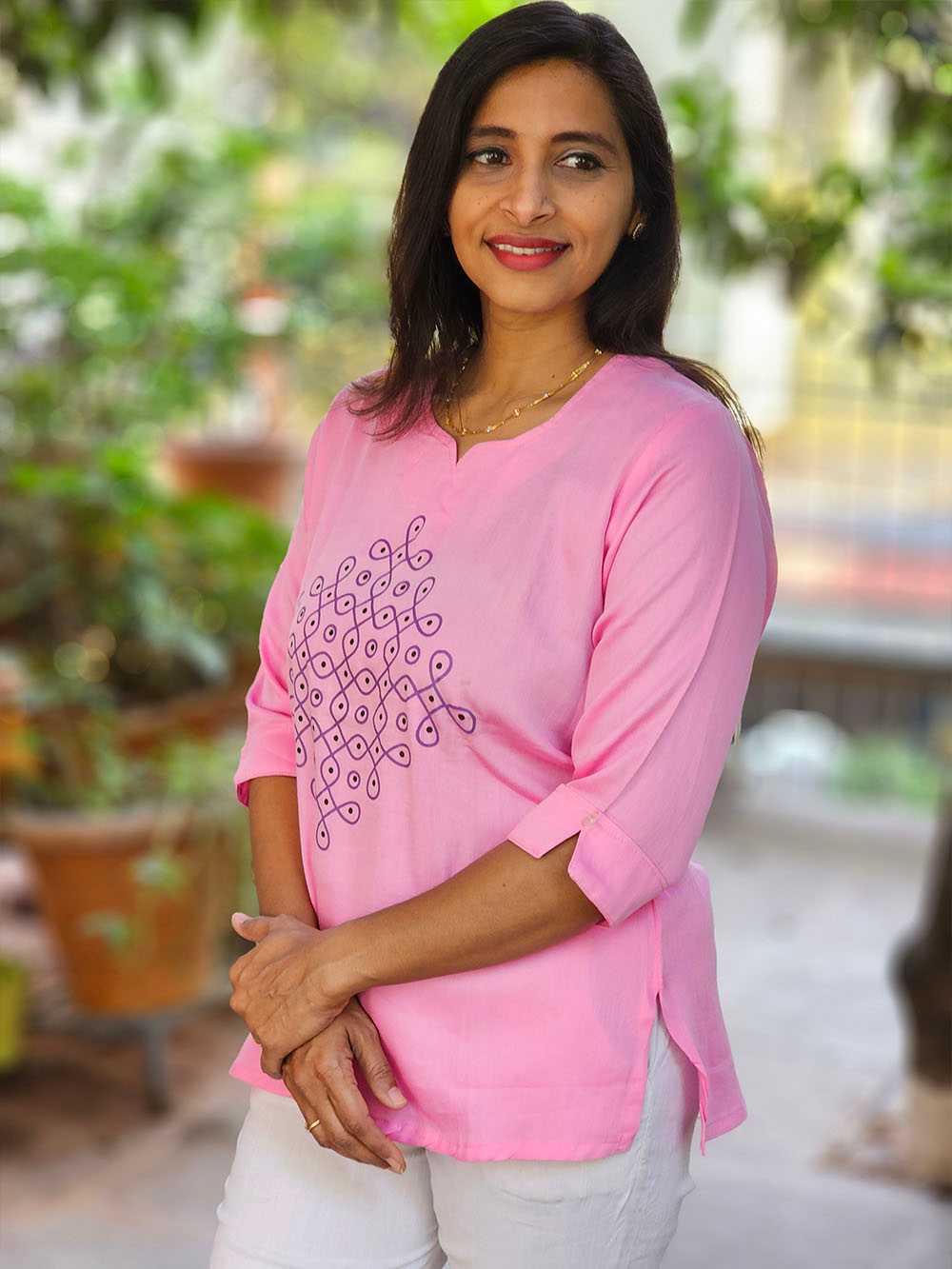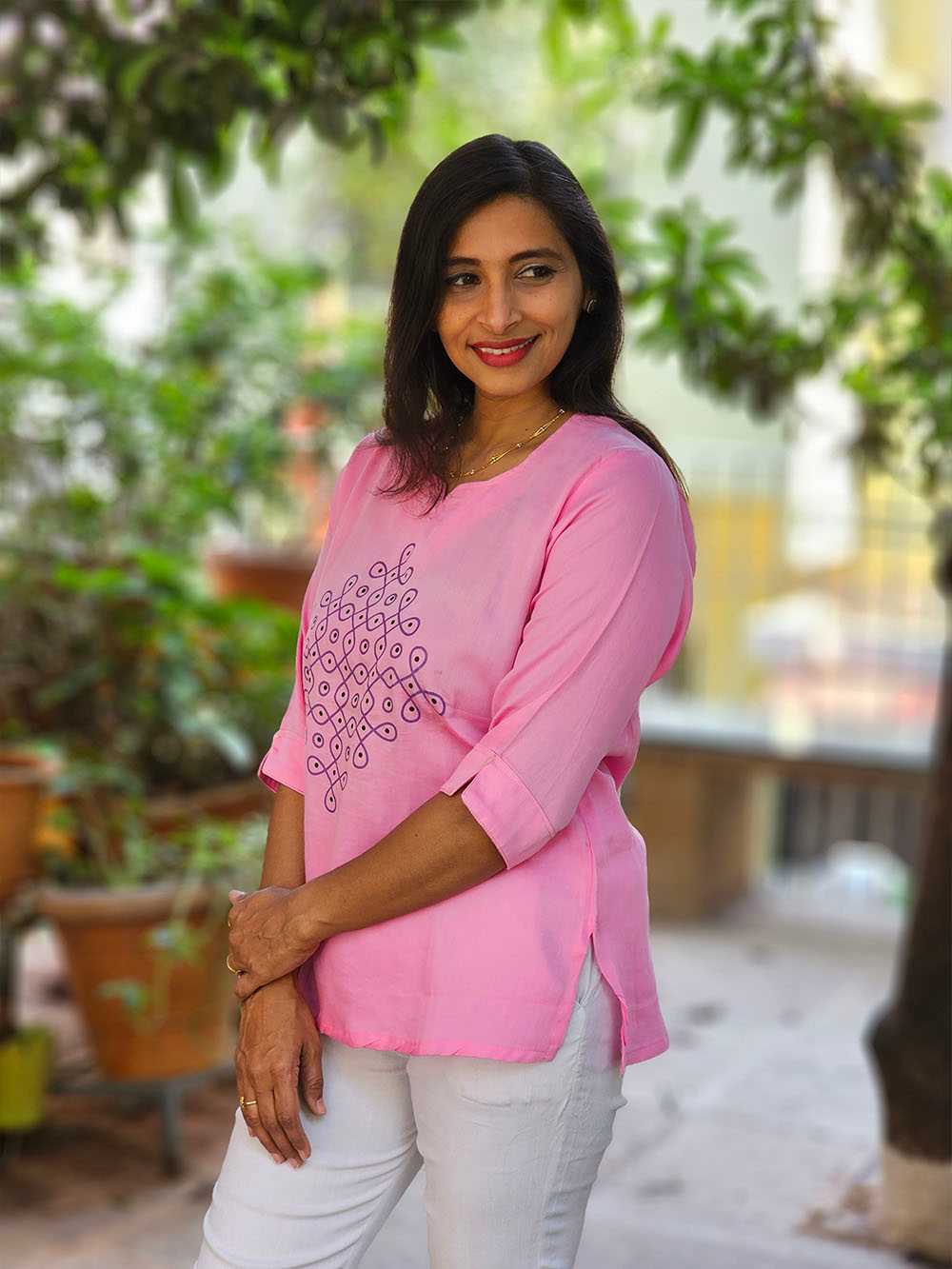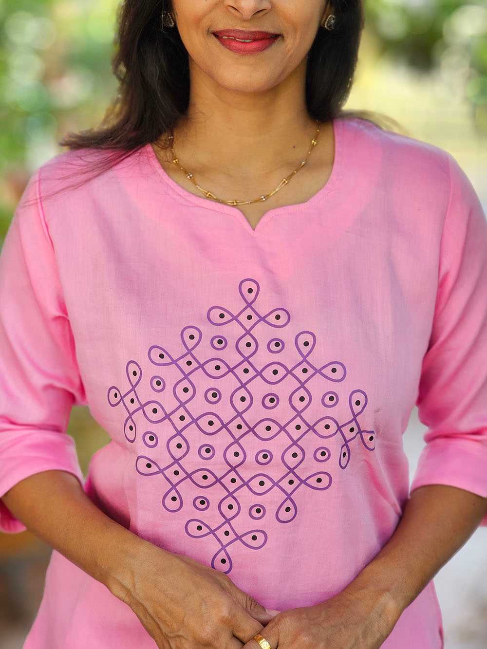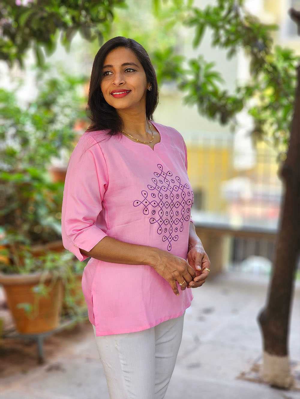 Celebrate the essence of South Indian tradition with our Kolam Tunic from the Rangoli Collection. Crafted on soft pure cotton, this tunic brings age-old Kolam artistry to life through a modern silhouette.