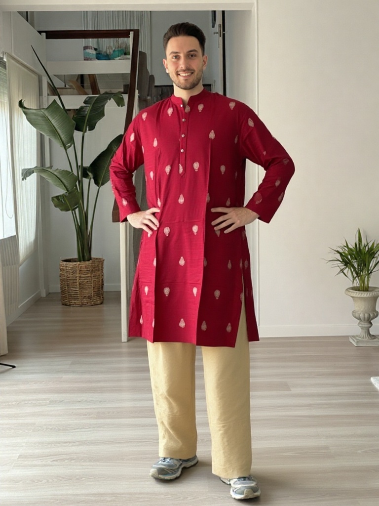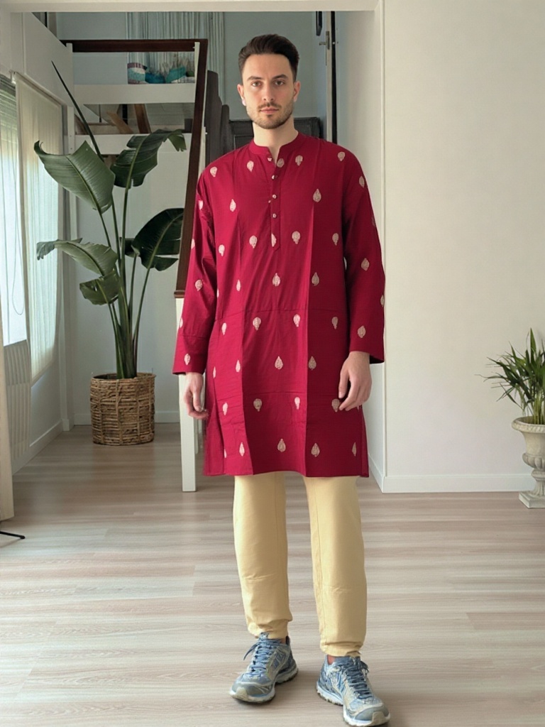 Celebrate tradition with confidence in our Heritage Paisley Red Kurta. Crafted in a rich red hue, this kurta is adorned with subtle paisley motifs that enhance its festive appeal while maintaining understated sophistication.