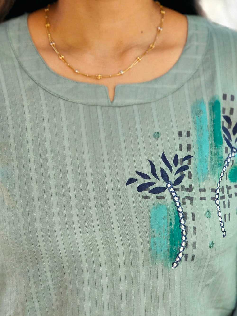 Exquisite Fusion of Art – A unique blend of hand-painted and embroidered design, celebrating traditional craftsmanship.