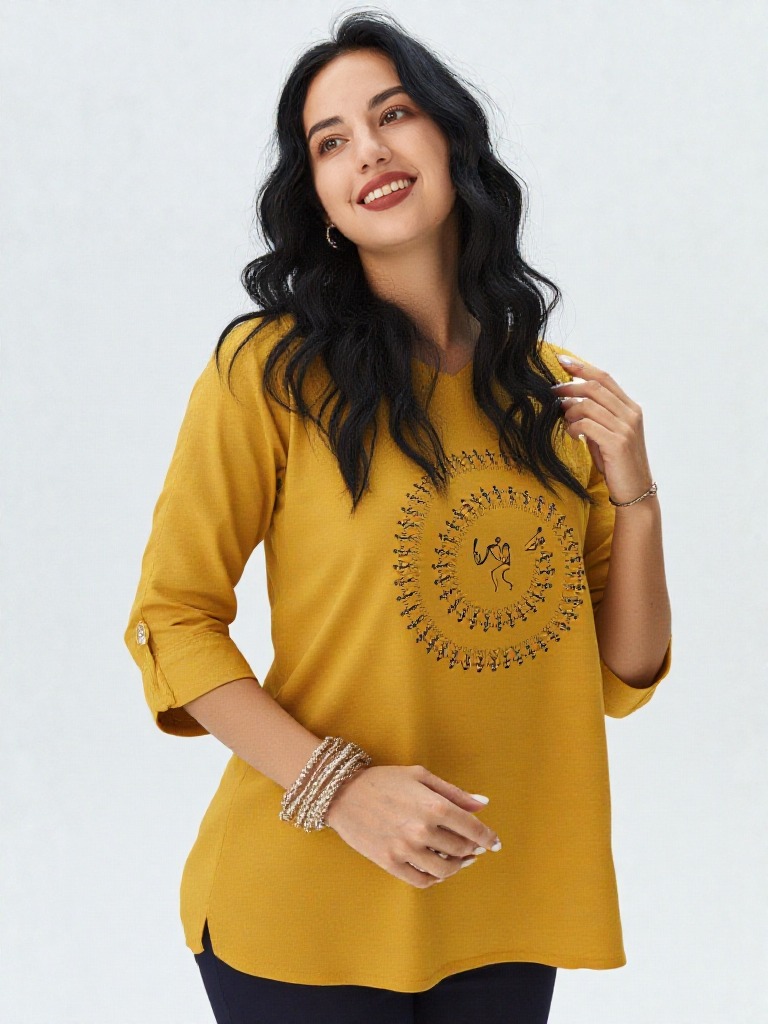 Perfect for casual outings, cultural events, or festive gatherings, this tunic blends heritage artistry with modern elegance, making it a timeless addition to your wardrobe.