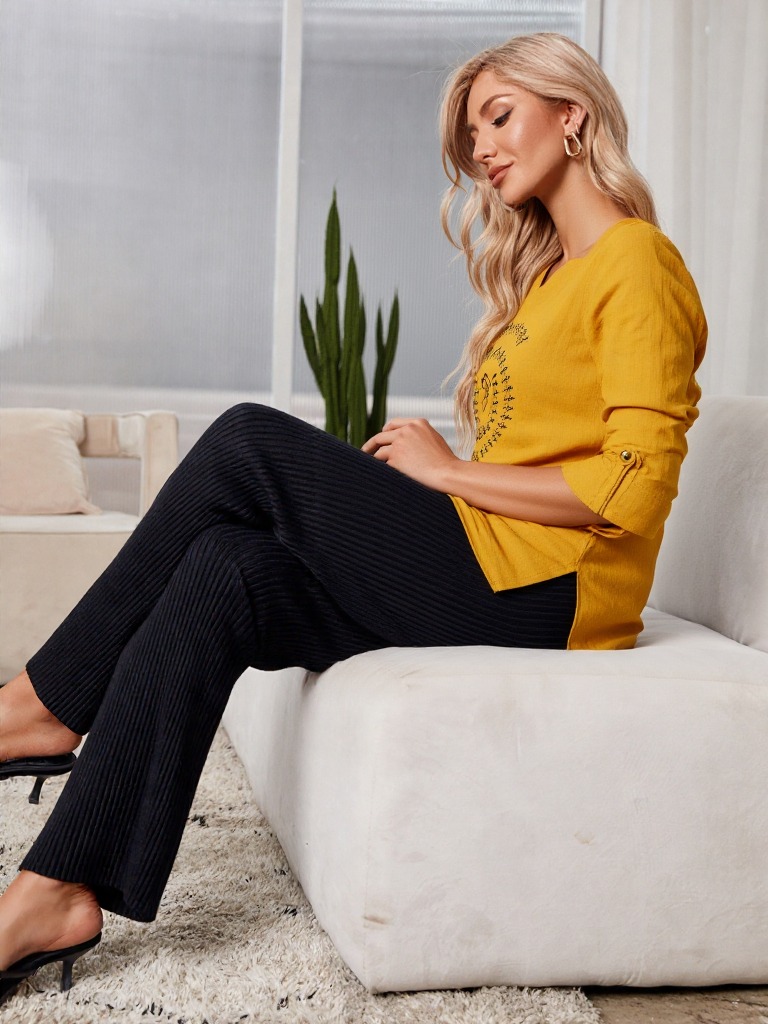 Styling Tip: Pair it with slim pants, statement earrings, and flats for a graceful look.